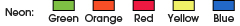 Assortment Pack contains 5 each of the following neon colors: Orange, Green, Red, Yellow and Blue.